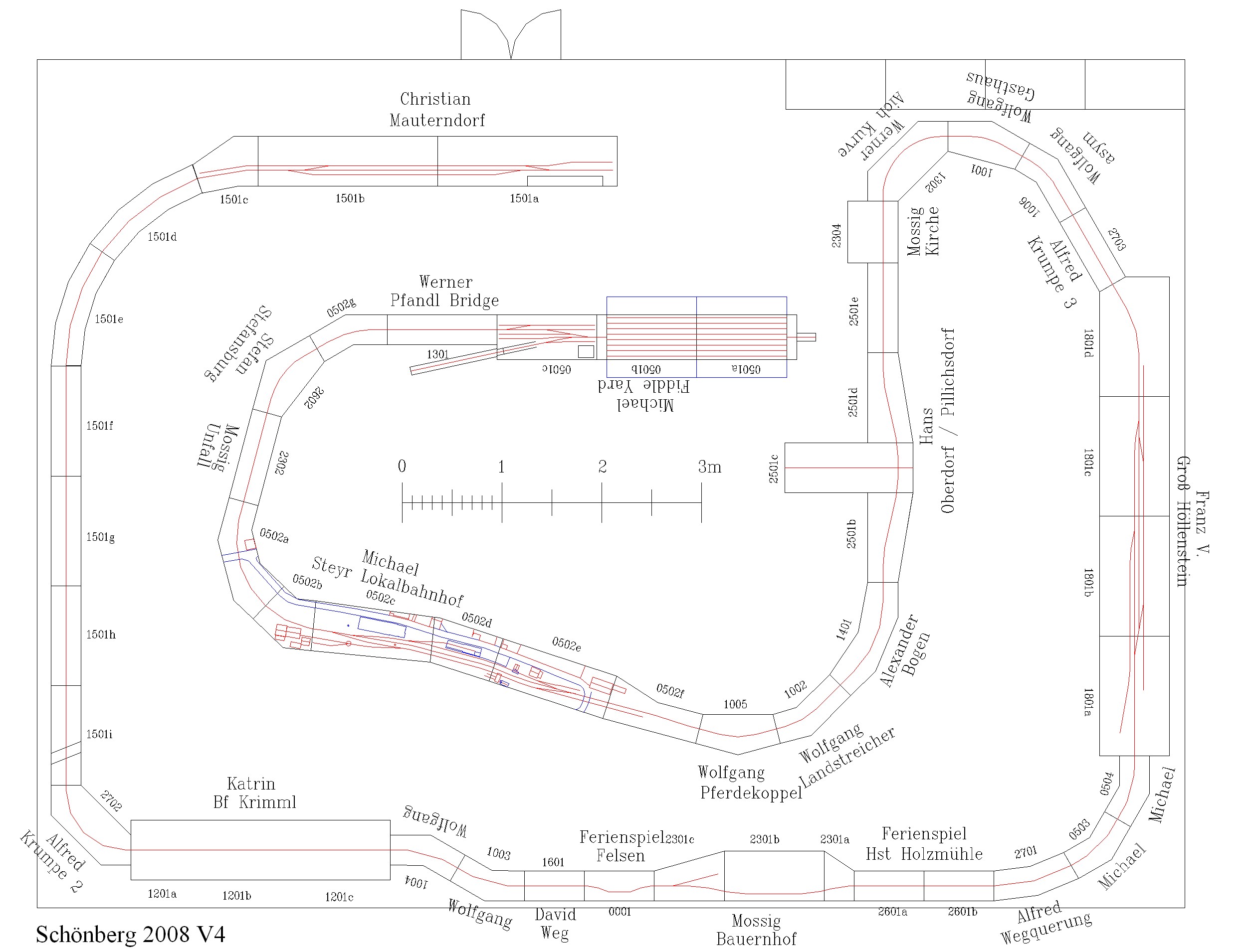 Nach einer vereinsinternen Neuorientierung im Herbst 2007 war Schönberg am Kamp im Februar 2008 im Musikerheim quasi ein Neubeginn. Ursprünglich als interne Ausstellung ohne Publikum geplant, hatte es sich in Schönberg rasch herumgesprochen, dass im Ort eine Modellbahnanlage zu Gast ist. Dementsprechend stark war auch dan der Publikumszustrom, was manchmal zu bedrängter Enge im Saal führte.