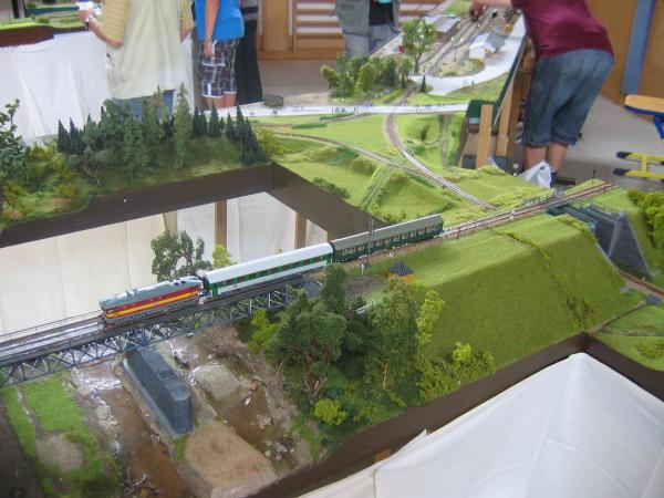 - Rudi Brandeis präsentierte einen Teil seiner sehr schönen Waldviertel-Modulanlage, eingebunden in die SMBG-Anlage. Vor allem die Nachbildungen des Fassldorfes und des Gmünder Gleisdreiecks fanden regen Zuspruch.