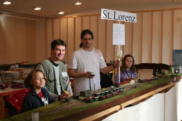 Etwas weniger Publikum als vor zwei Jahren, aber kein Nachteil ohne Vorteil - in der ersten Reihe sieht man besser. Das interessierte Publikum bekam einen neuen Bahnhof - Gstadt an der Ybbstalbahn - sowie einige neue oder verbesserte Streckenmodule zu sehen, ergänzt durch altbewährtes aus unserem Bestand. Auch einige neue Fahrzeuge waren unterwegs - die 'neue' U von Liliput -298.55 aus China mit neuem Antrieb- läuft bei uns bereits mit Sound und Beleuchtung.
