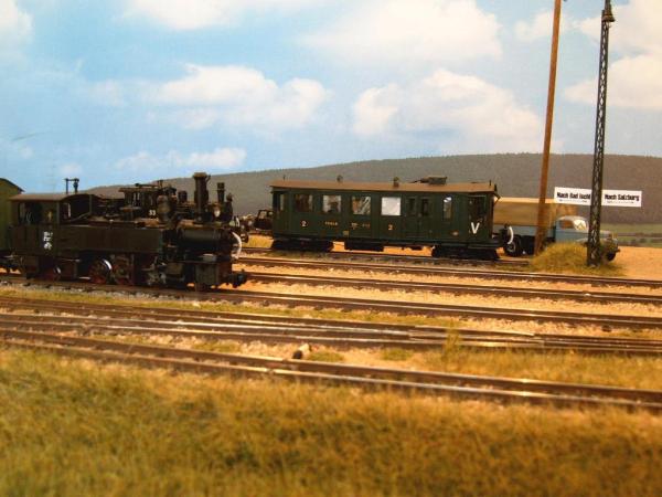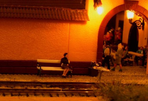 Müde vom Wandern, läd das 'Gasthaus zur Dampfbahn' zu einer Rast ein. Während sich der Wanderer stärkt, vergnügen sich die Kinder auf der schmalspurigen Dampfbahn.