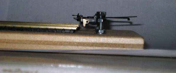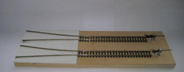 Deutlich erkennbar im Bild unten die beiden unterschiedlichen Kupplungsbügelhöhen (5,6mm und 5,0mm). Damit wird einfach überprüft, ob der Testwagen mit den beiden grenzwärtig befindlichen Kupplungshöhen gut kuppelbar ist und sich im Rahmen der Toleranzwerte befindet.