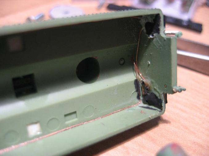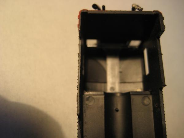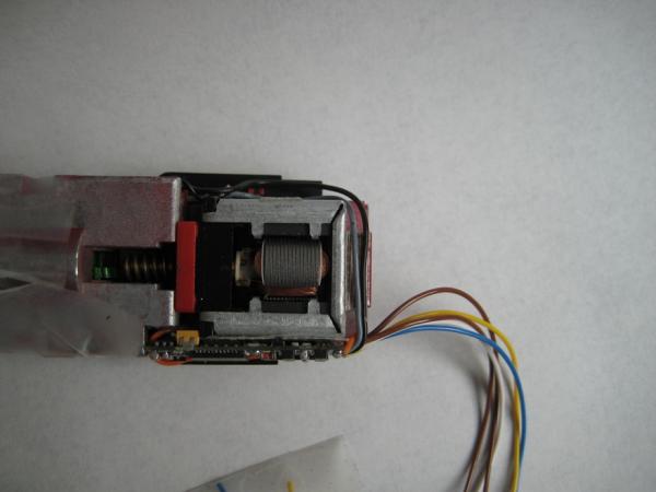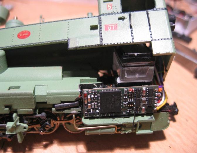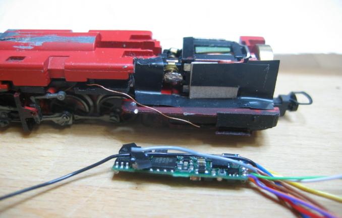 - Zwischen Motor und Gehäusewand wird es 'ganz eng' für den Decoder, die Gehäusewand muß geschwächt werden (auf zirka 0,5mm) Eine etwas mühsame Arbeit mit der Feile.