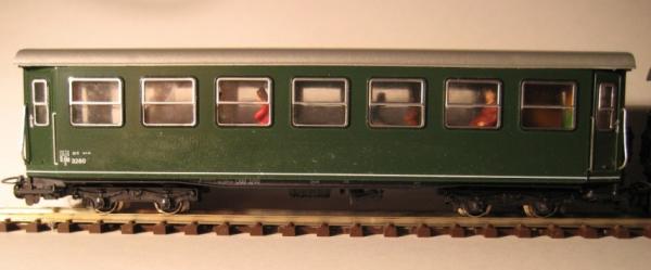 Die 4-achsigen Personenwagen 3280/3281 sind auf Heeresfeldbahn-Untergestellen aufgebaut, die einen kürzeren Drehzapfenabstand und andere Drehgestelle als die meisten anderen Wagen. So sieht der umgebaute Wagen aus: