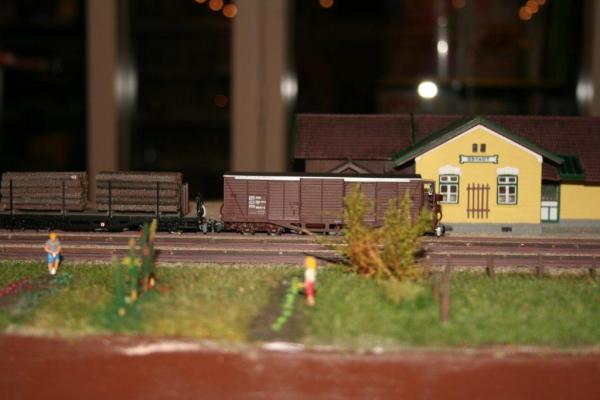 Die Module dieses in Bau befindlichen Bahnhofs zeigen die Situation um etwa 1965 bis 1975. Das Bahnhofsgebäude besitzt noch den alten Güterschuppen mit dem charakteristischen Anbau auf der Gleisseite, die alte WC-Anlage ist noch in Betrieb. Am Gleisstutzen der Westausfahrt ist die 'Entseuchungsanlage' zu sehen, wo nach Vieh- oder Leichentransporten die dafür verwendeten Wagen desinfiziert wurden.